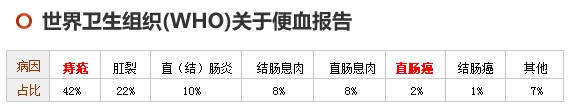 痔疮:便血发生在排便过程中或便后,血色鲜红,血与粪便不混合。